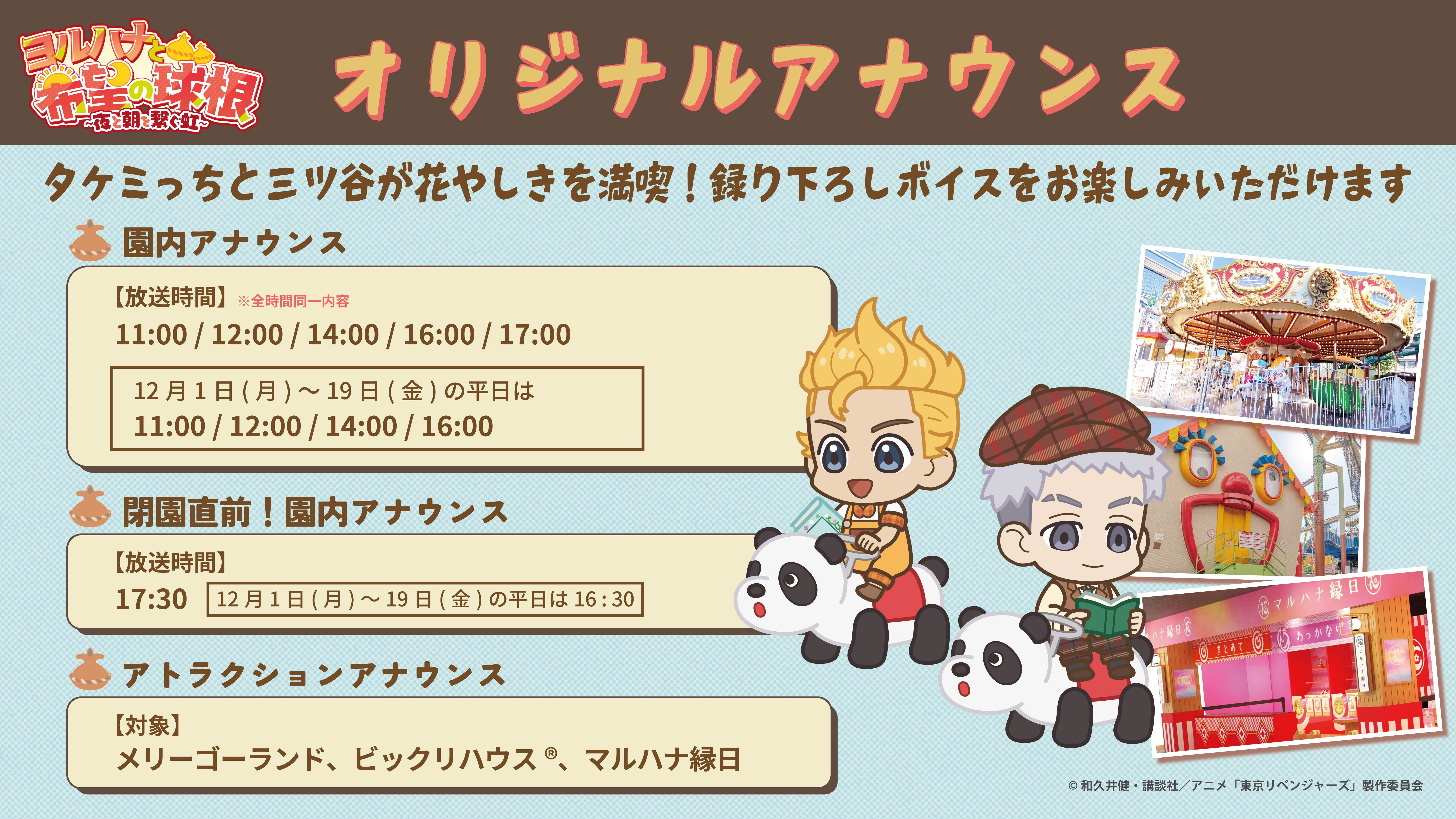 さらに!今回のコラボレーションイベント開催を記念して、花やしき併設の多目的ホール「浅草花劇場」にて声優キャストが登壇するスペシャルイベントも開催します!開催は11月17日(月)、12月21日(日)の2日間限定!それぞれ違った内容をお届けしますのでお楽しみに!