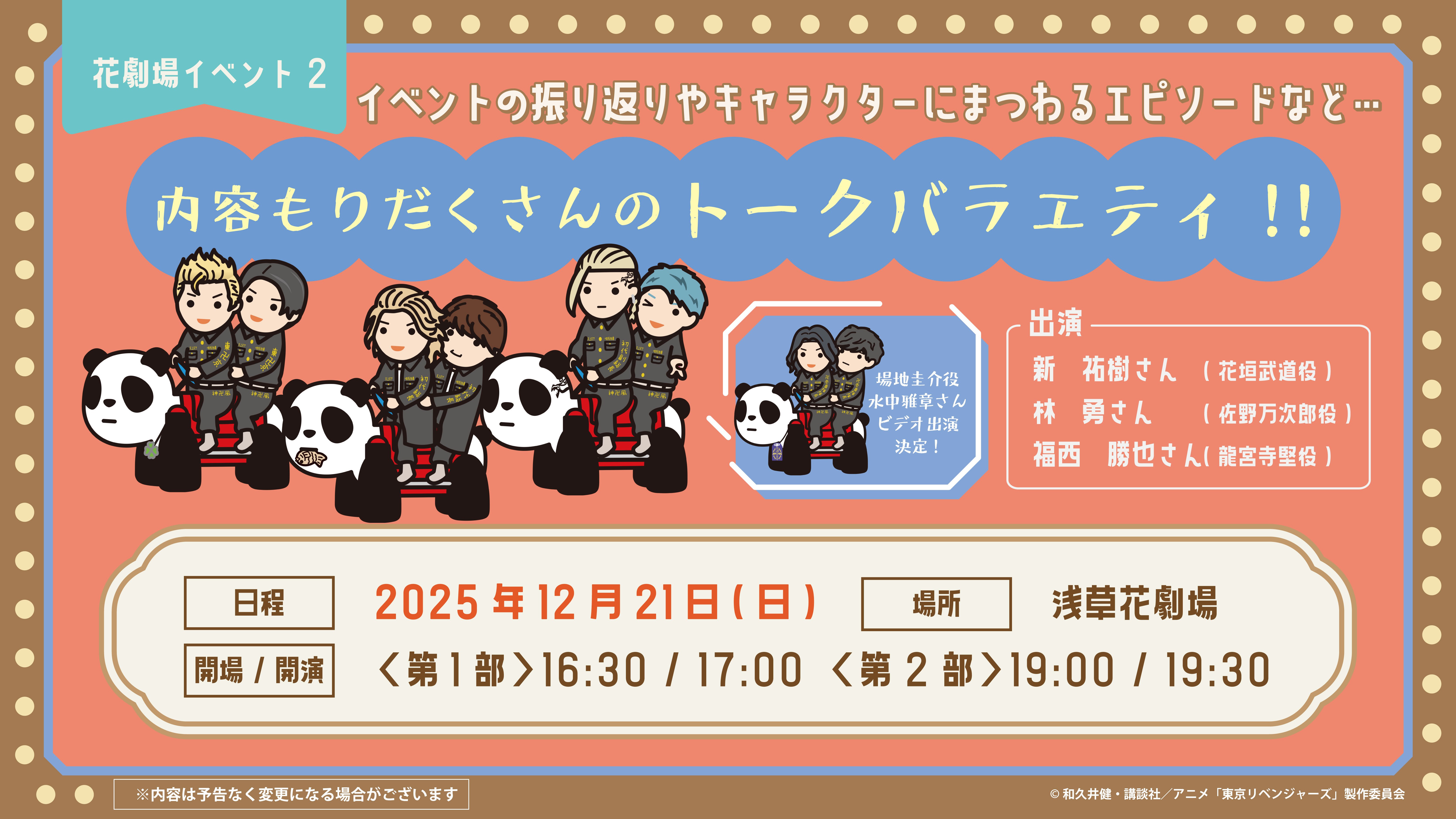 【出演者】新 祐樹(花垣武道役)、林 勇(佐野万次郎役)、福西 勝也(龍宮寺堅役)、狩野 翔(松野千冬役)